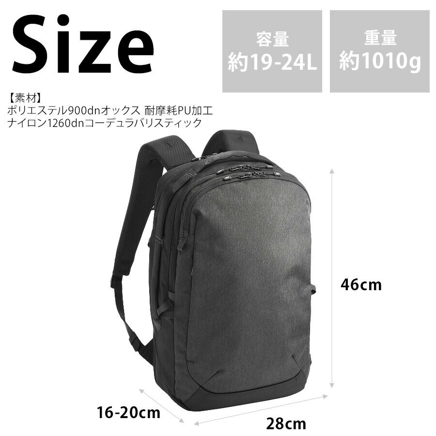 68592【01.ブラック】ラグレンティスヘザー リュック 19-24L [ace.GENE][エースジーン]