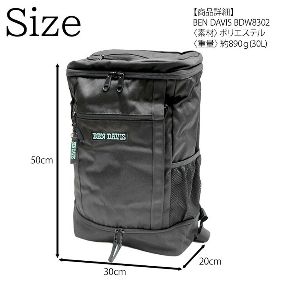 しっかりとしたBOX型が目をひくデイパック。生地には撥水加工も施されています。