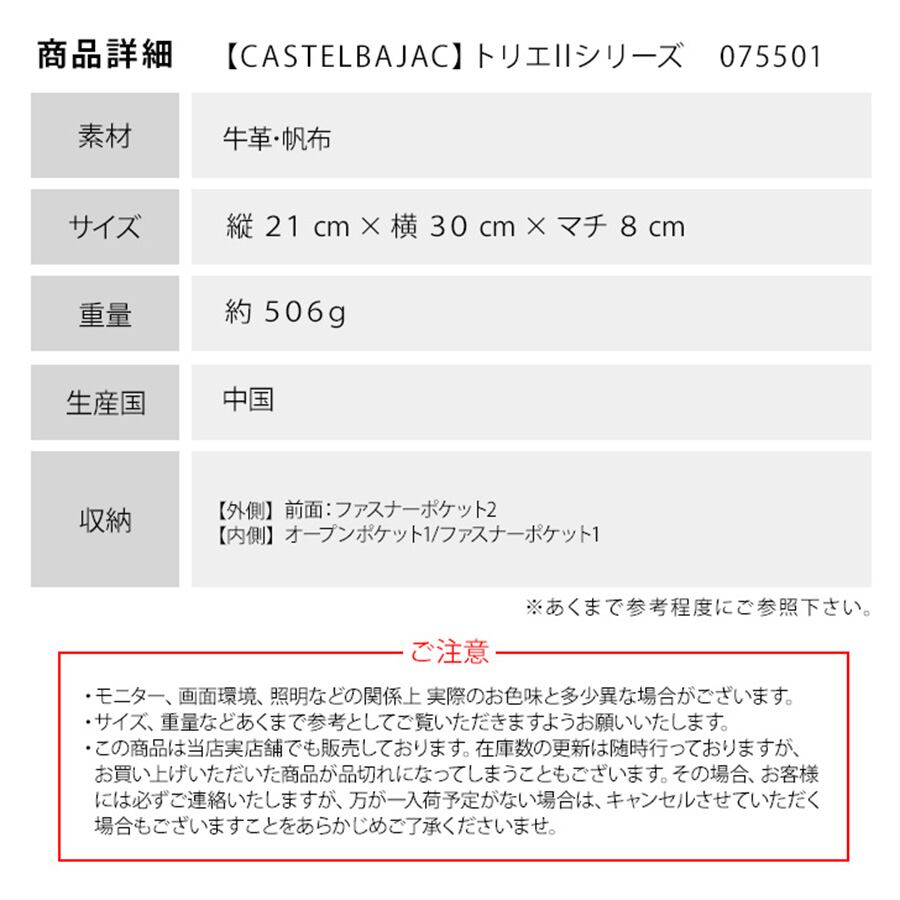075501【01.ブラック】トリエ2 レザーミニブリーフケース [カステルバジャック] [CASTELBAJAC]